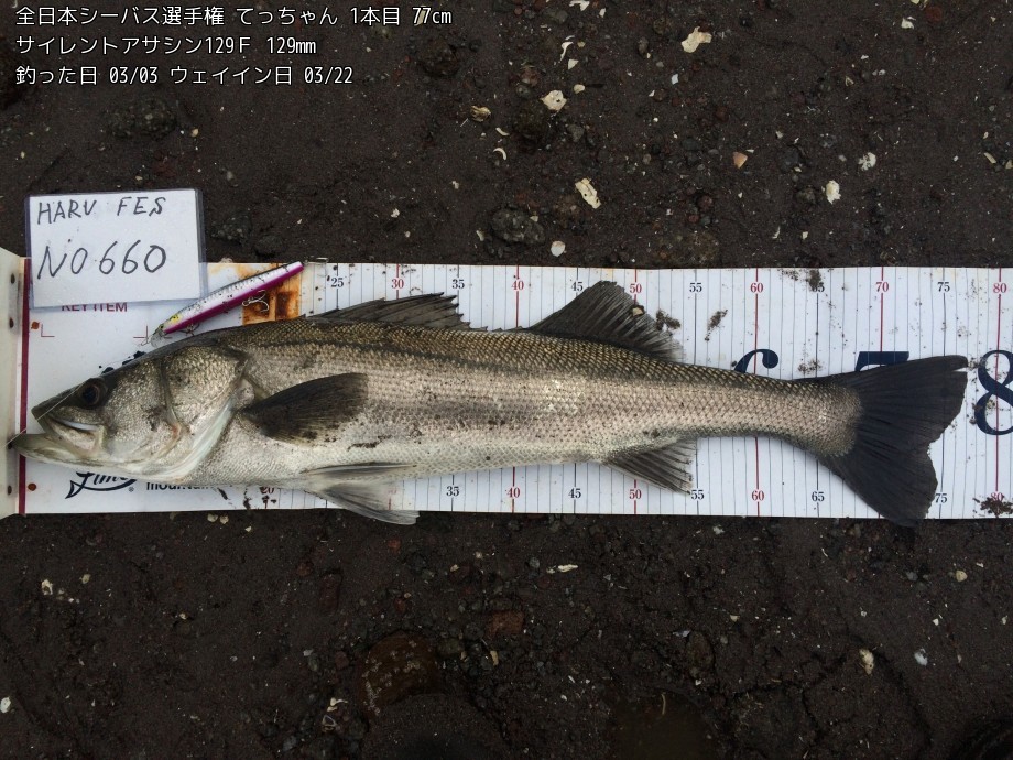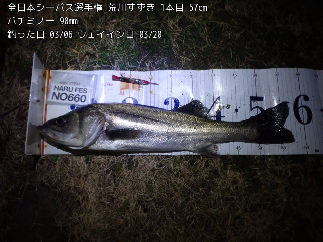 シーバス(タイリクスズキ・ヒラスズキ・マルスズキ) シーバス3本の全長にて競います。 |