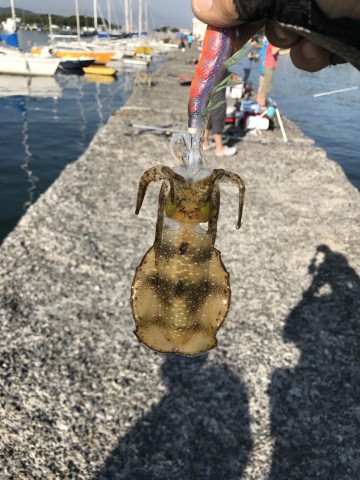 周りの青物狙いの人達を観察しつつ、多少成長してるのも居るはずと 2号 2.5号 3号とエギ投げ倒してると ようやくイカパンチを受ける。