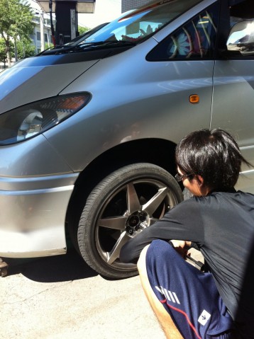 祥がササッとスペアのタイヤに交換してなんとか走り出すことが出来ました。