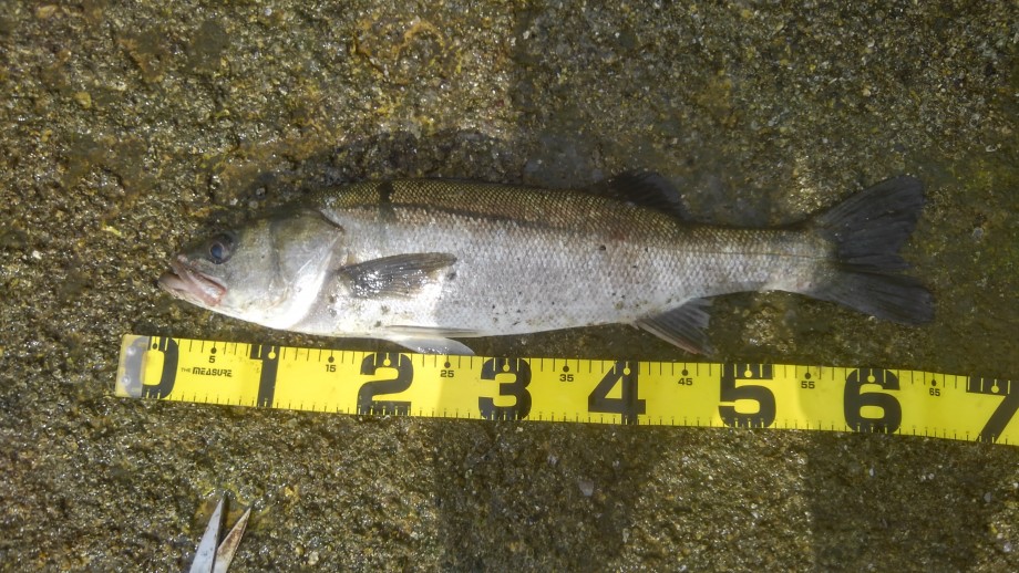 腹の中からはなんも出てこんかったがたぶん冷音14gと同サイズのサッパの群れに付いてるみたいですね。(先週のシーバスからは大量のサッパの稚魚が出てきました)