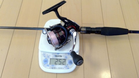 で、月下美人AIRのリールとロッド、ラインにリーダー、ジグヘッドにワームをすべてそろえたときの重さが、
