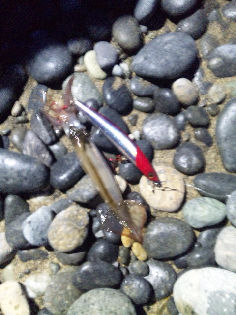 最近イカを補食している噂を聞いてましたが本当みたいです(゚∀゚) ジアイに入って?アタリがあるも乗せられず(^^;)ルアーを変更1キャスト☞コン コンッ ガツン (^_^)v 何となくシーバスさんは派手なアクションが、あまり好みでないようで、スローでユルイ動きに反応するきがしました!(なんとか3キャッチヽ(^0^)ノ)