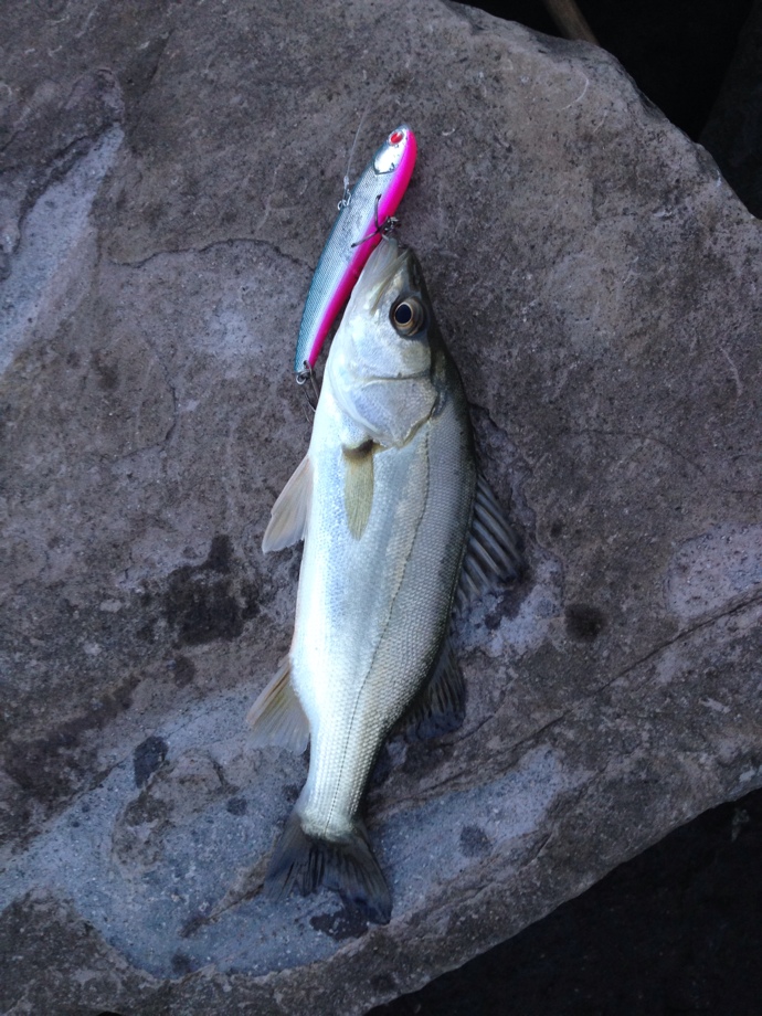 ボラが引っかかったかと思いきや上げてみるとシーバスでした。