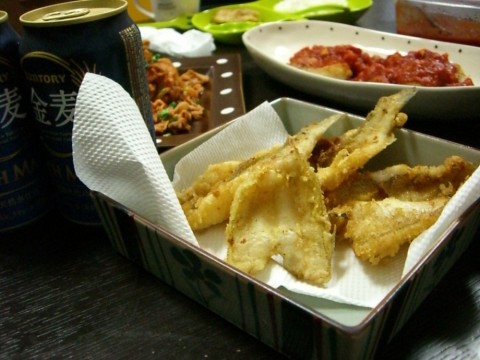 夜は今日釣ったキスの天婦羅&先日釣ったシバスの揚げたヤツにミートソースかけで豪華にディナー