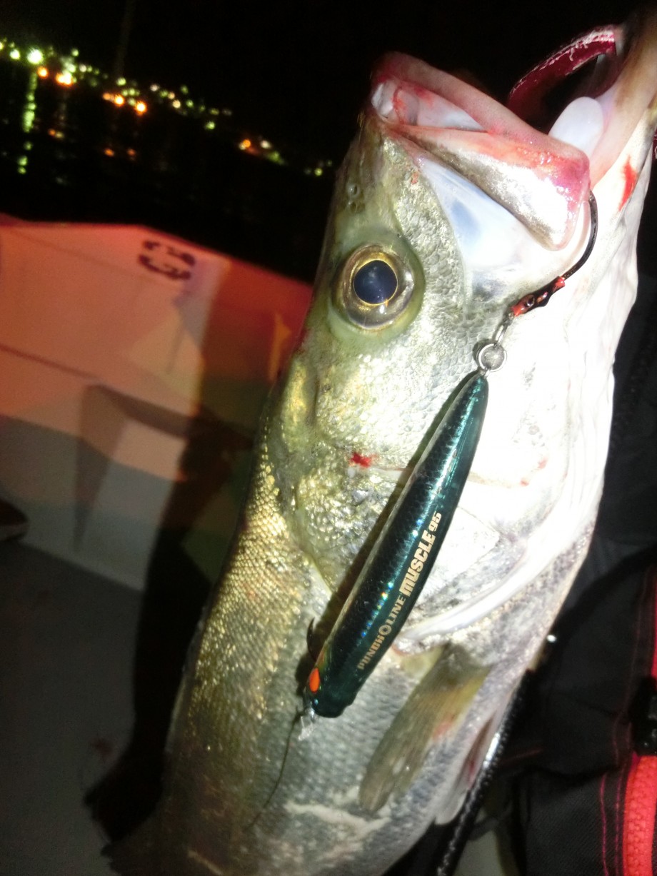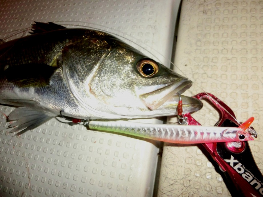 そんなシーバスにはH-baitの表層置き。笑 たまに引き波を出すとドン!!と!!