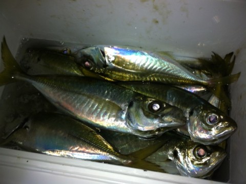 釣った鯵は最早過去。惜しげも無く他人に譲る。