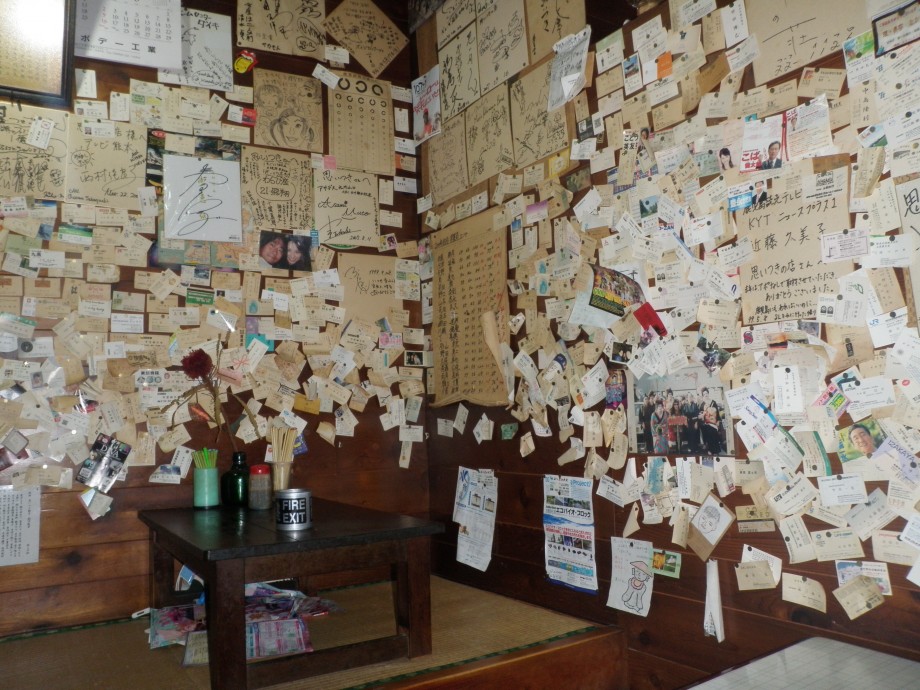 壁は一面、所狭しとサイン色紙や名刺でびっしり(爆)こちらも口コミで有名なお店です。ちなみにここもメニューは餃子のみ。