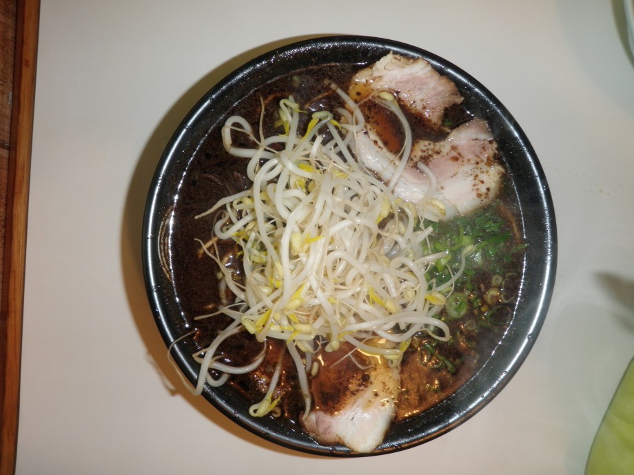 メニューはラーメンのみ!スープはしょうゆ?いや違う・・・とんこつみたいですが見た目通り、真っ黒いスープでかなりインパクトがあります!!味はというと意外にあっさり・・・マー油の香ばしい香りがGOOD!!