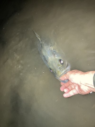 メモリアルフィッシュなので、向き変えたり、綺麗に洗ったり、ブツ持ち自撮りしたり、もっと写真たくさん撮りたかったのですが、下手なランディングで、お魚さんヘロヘロでしたので、慌てて蘇生してお帰りしてもらいました。