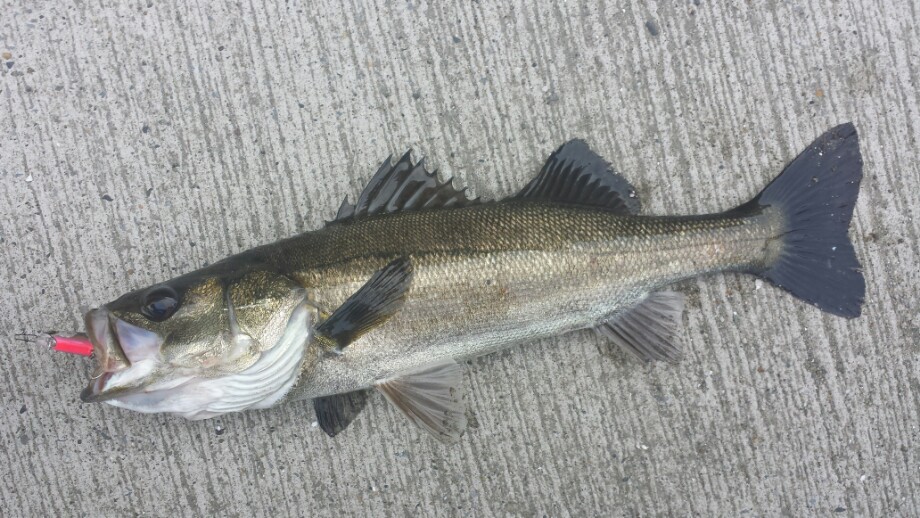 なんて思った瞬間にルアーが外れ、シーバスはバタバタと暴れてそのまま水の中へボチャン(゜ロ゜;