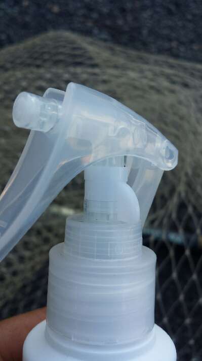 フォグクリーンフィッシングを満遍なくネットにスプレーして10秒経ってから臭いを嗅いでみる。