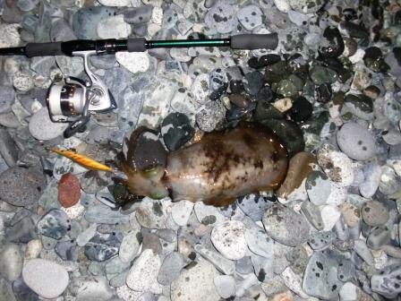 このイカを釣った直後、エギを根掛かりでロストした為「もうお腹いっぱい!」と、納竿しました。