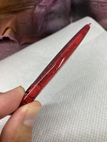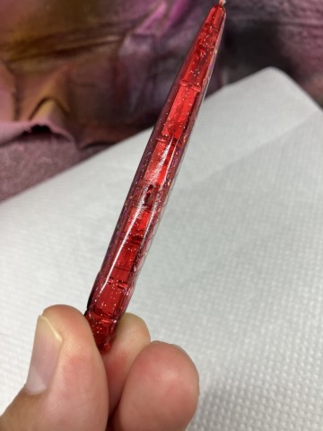 細身のシンペンも手持ちに入れようと、何年も使わずボックスの肥やしになっていたパンチラスリム。を、メッキベースにクリアレッドのレッドフリッカーにして、さらにクロスホロ被せよ!と要らんことしたい精神の結果が…これである(笑)フィーモカラーの再現をフィーモに載せて良いものかと思いつつ、まぁ他のカラーも大概やし今更か⭐︎と開き直りでござんす⭐︎大概のカラーは再現出来る無法者、それがワタシでやんす←