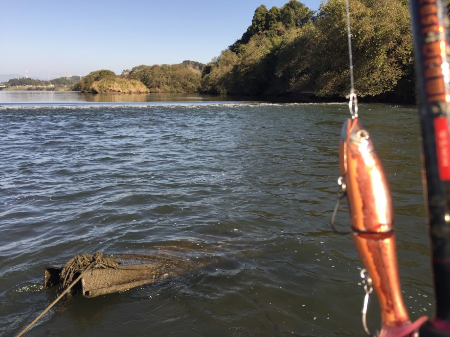 流れを観察しながら岸際のシェードが絡む落ち込みにジョイクロを堰の上まで投げて落とし込むw