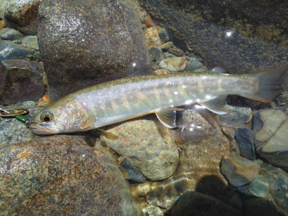 2日目は大石のゴロゴロした瀬が続く場所を2kmほど釣り上がった。