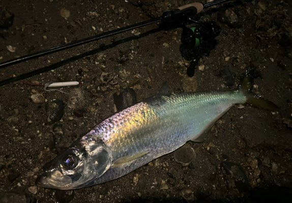 まあ想定外のターゲット、シーバス、チヌ、60近い有明ターポンを釣りロッドのリフト力を測るテストもやってみた・・