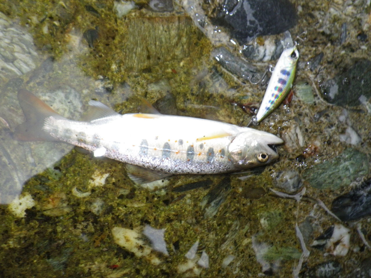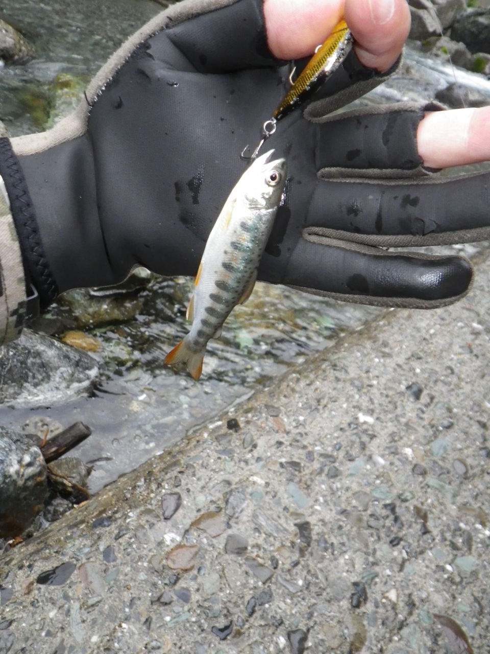 おそらく僕の釣り人生で最小のアメゴが釣れてくれた