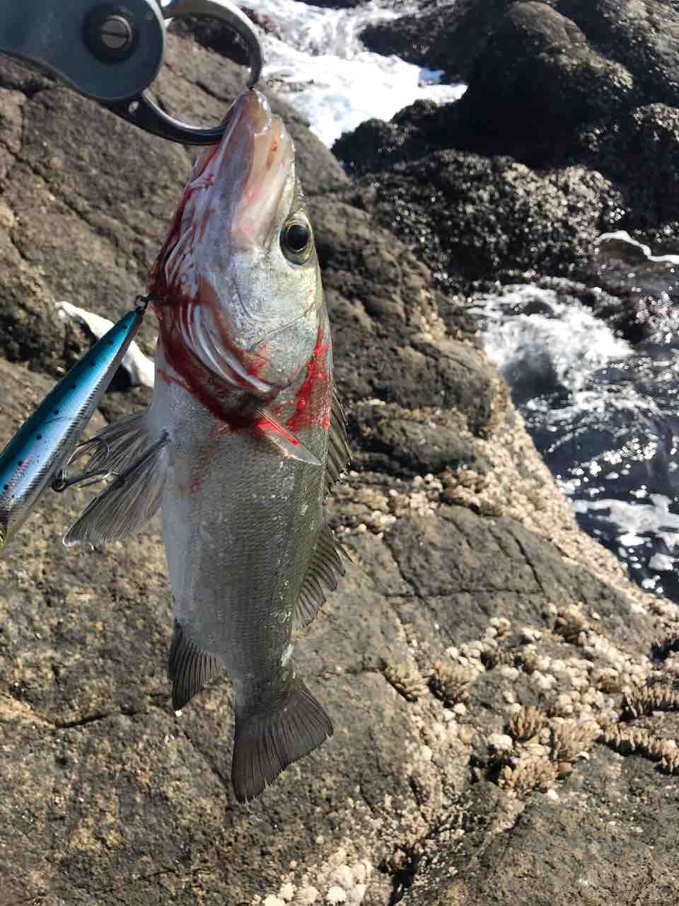 でもここが本命ポイントなのでとりあえず磯から磯へとランガンしてるとガッ!
