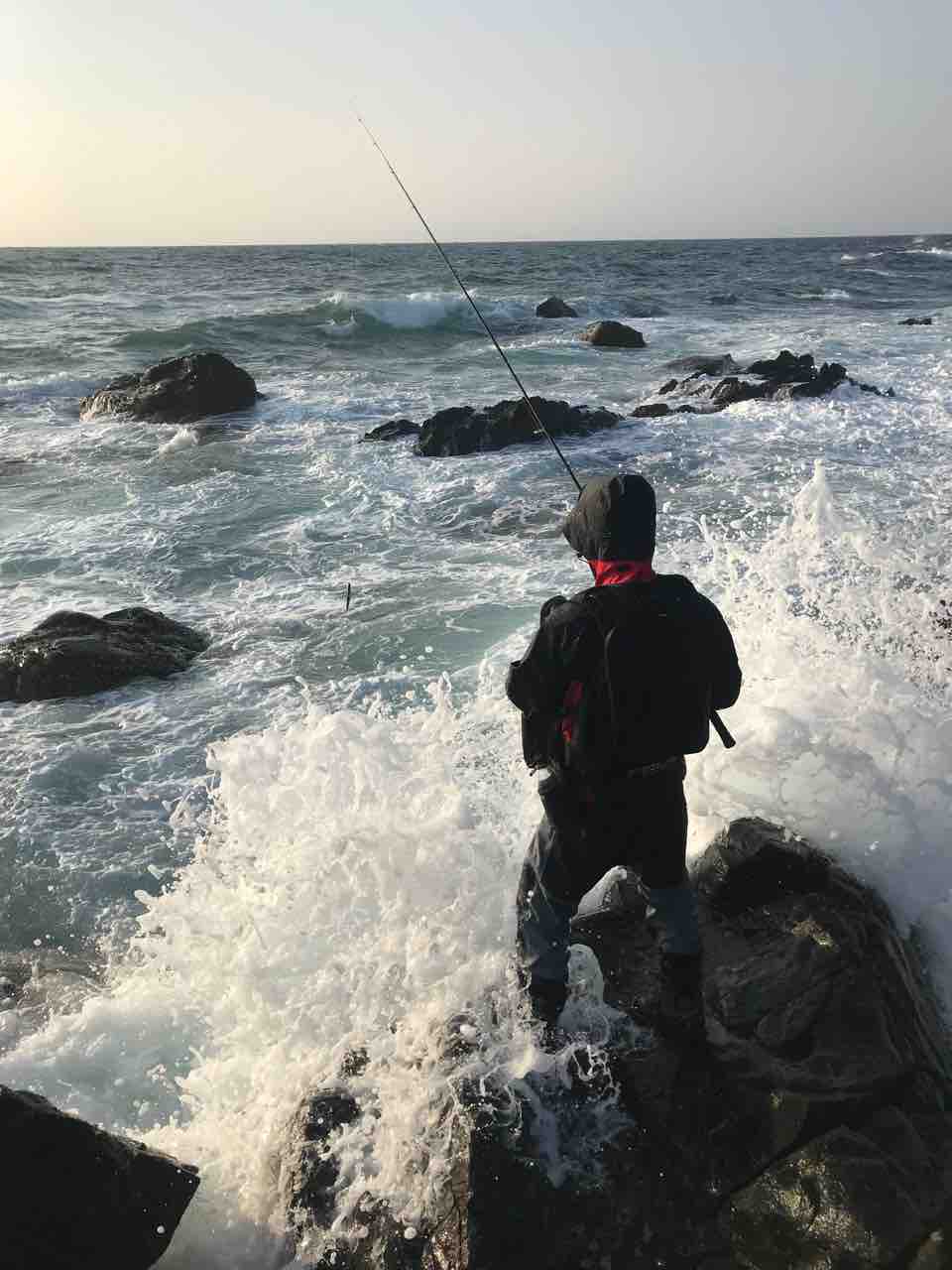 朝マズメ直前に磯に上がり期待感が高まりますが波が高くて前に出れない