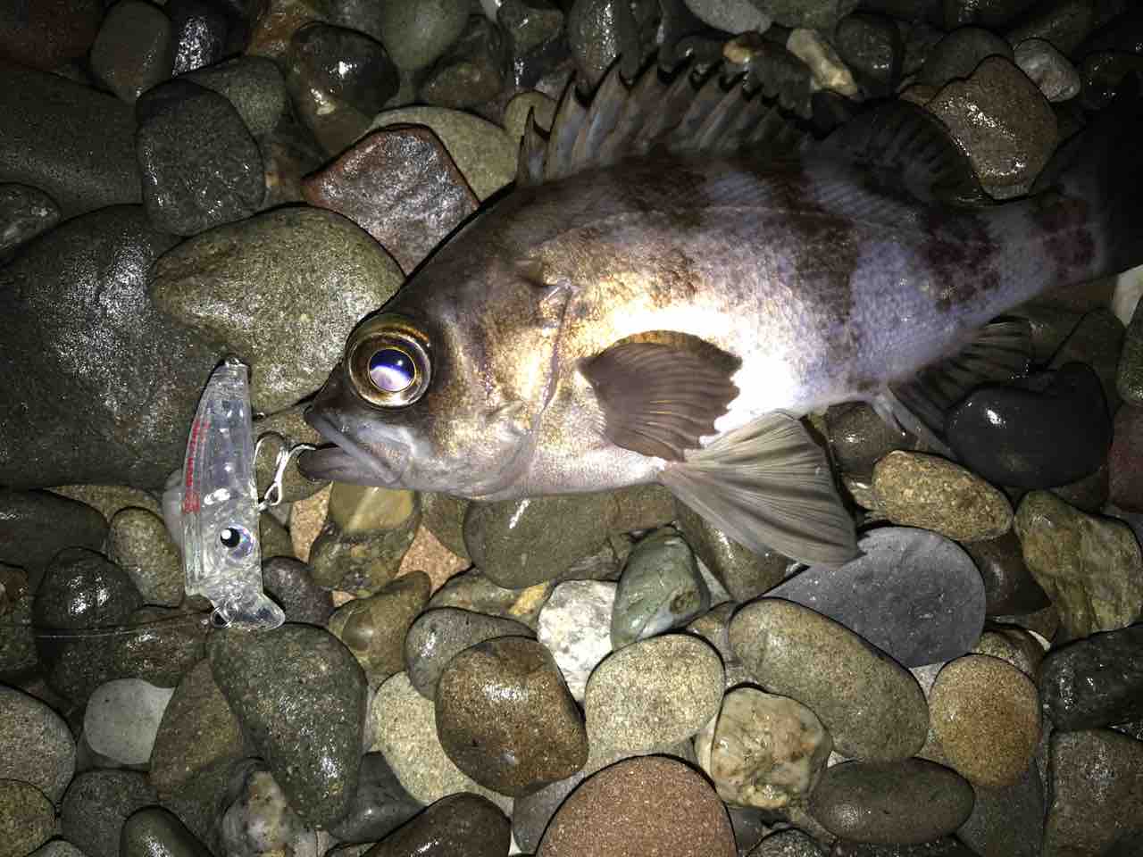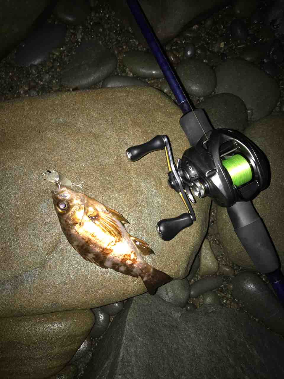 結局入れそうなとこが無くて、全く潮も流れてない浅い浅いゴロタに入ってみる