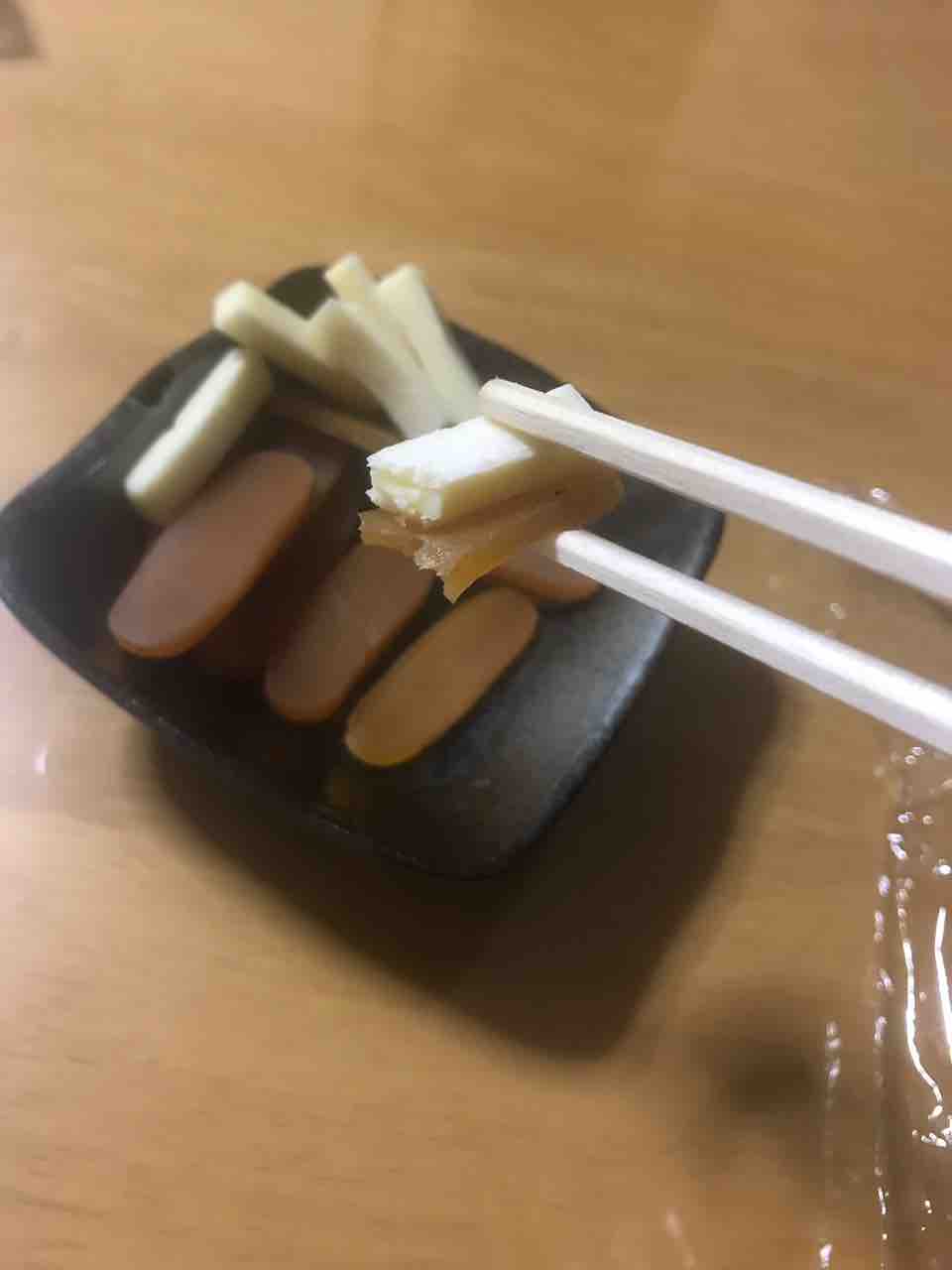 口に含むと塩気と独特の旨味があり単品でも美味しいですがチーズ鱈と一緒に食べると悶絶します