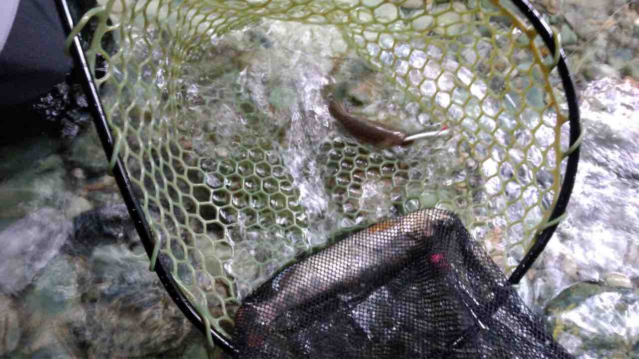 僕がイワナを抜き上げポチャンした後でトヨイチくんのルアーがモンスターに襲われる