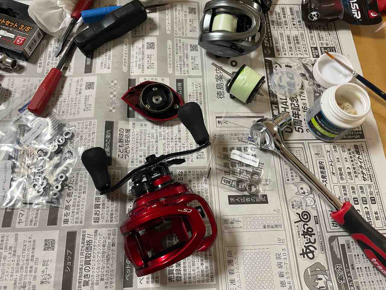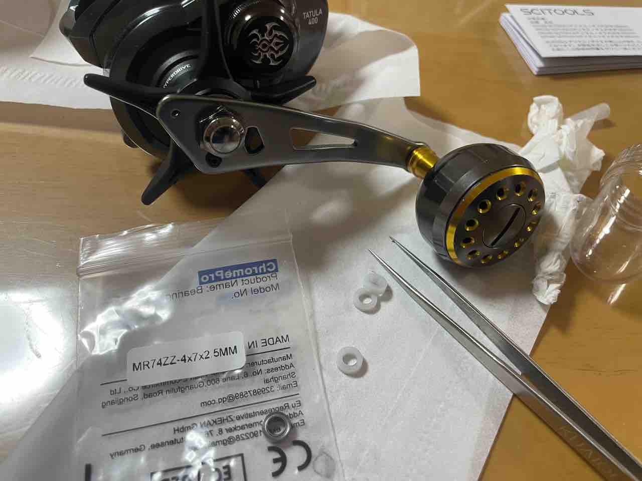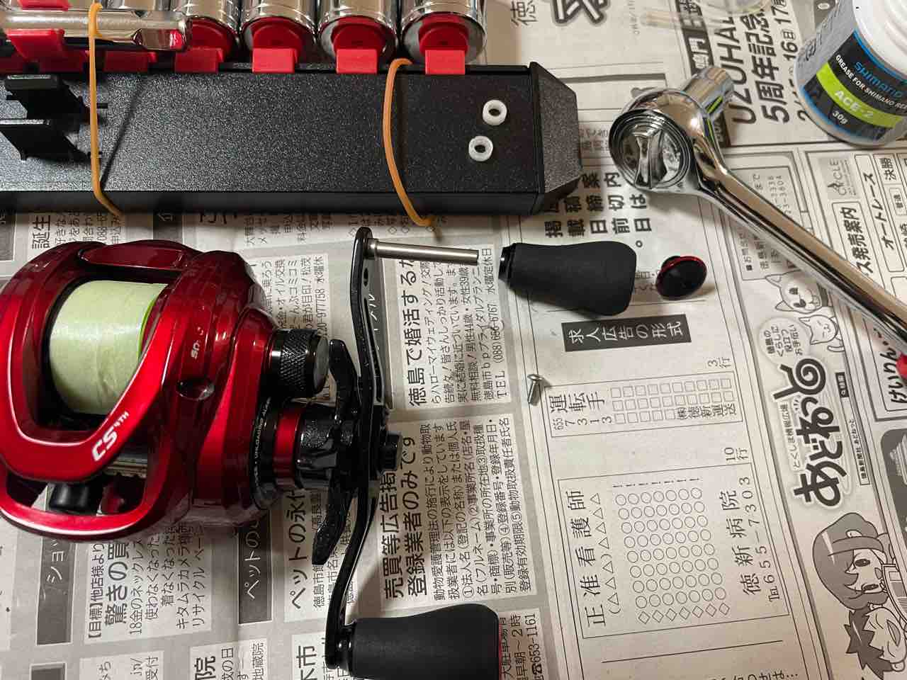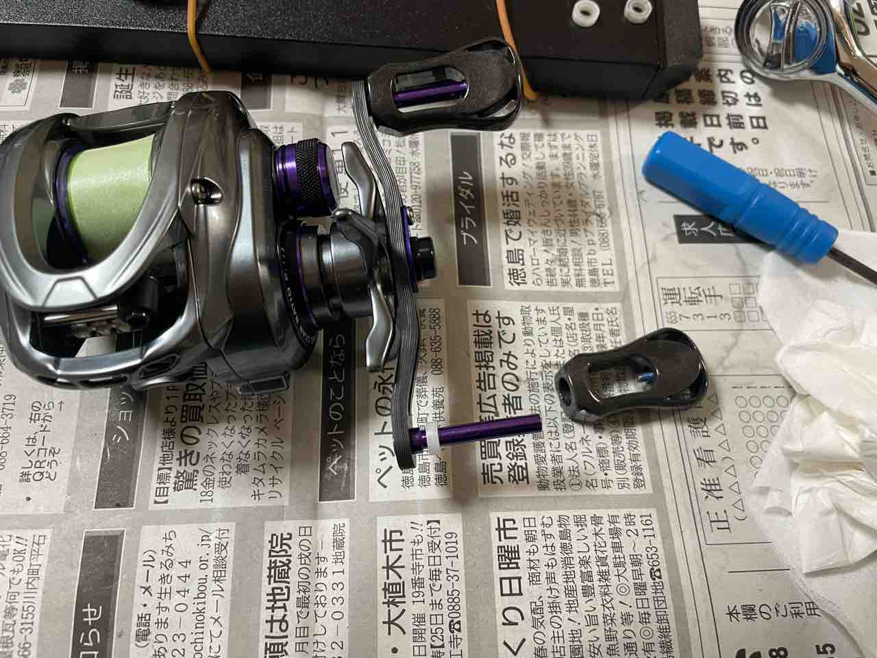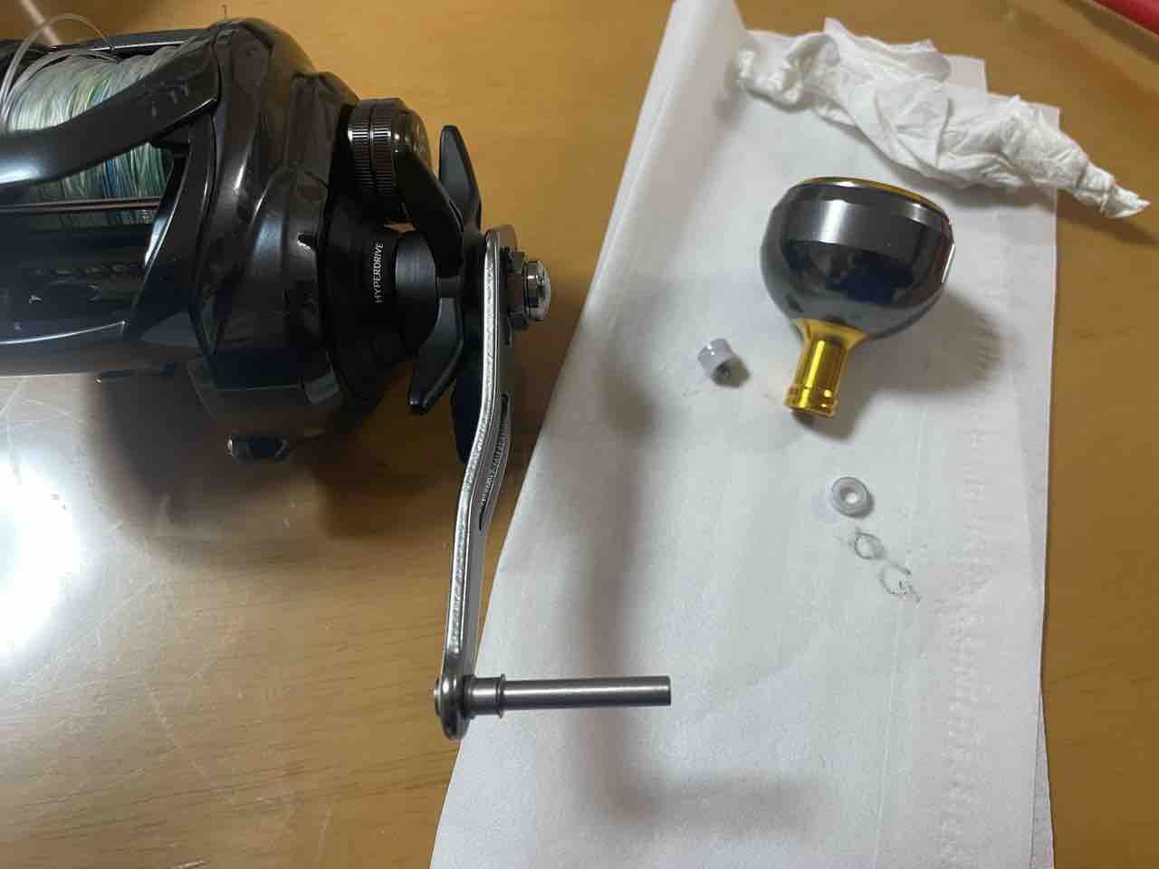 ついでに別の中華ベイトフィネスリールのハンドル交換も