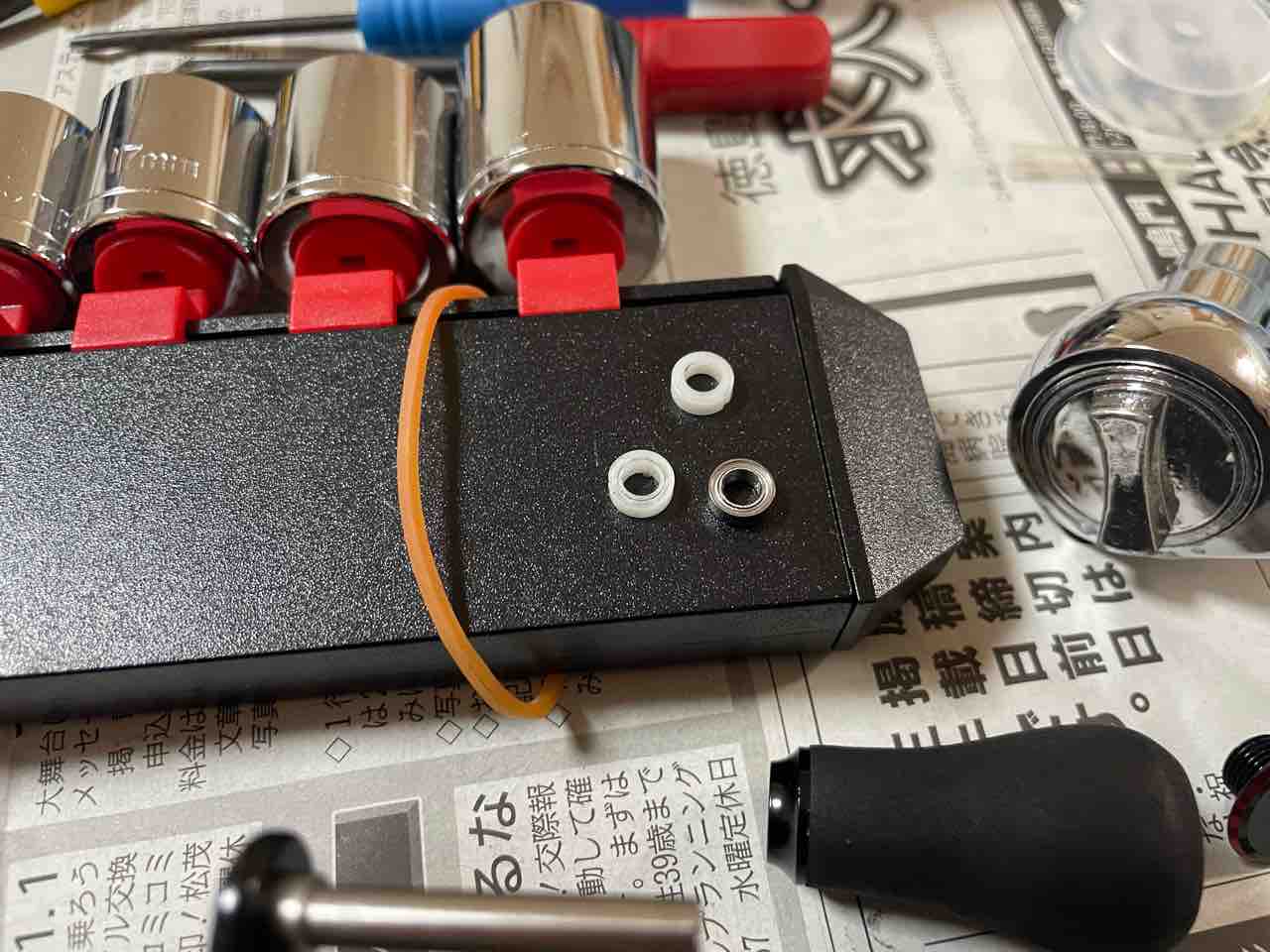 交換ついでにハンドルのプラスチックカラーもベアリングに交換
