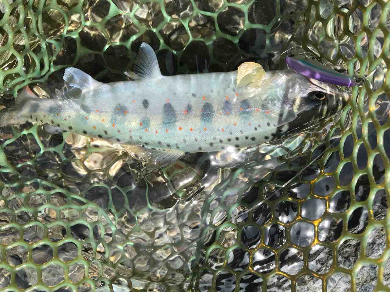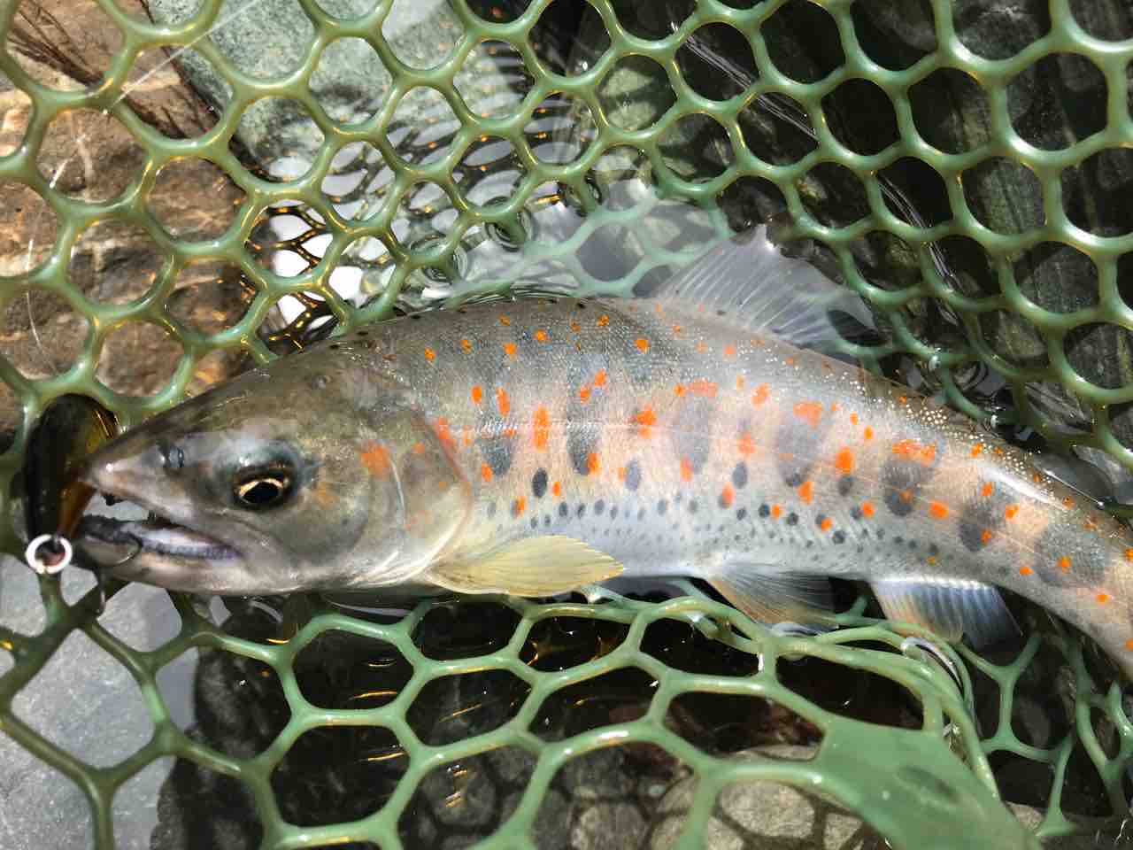珍しく成魚放流のアメゴが1匹だけ釣れました