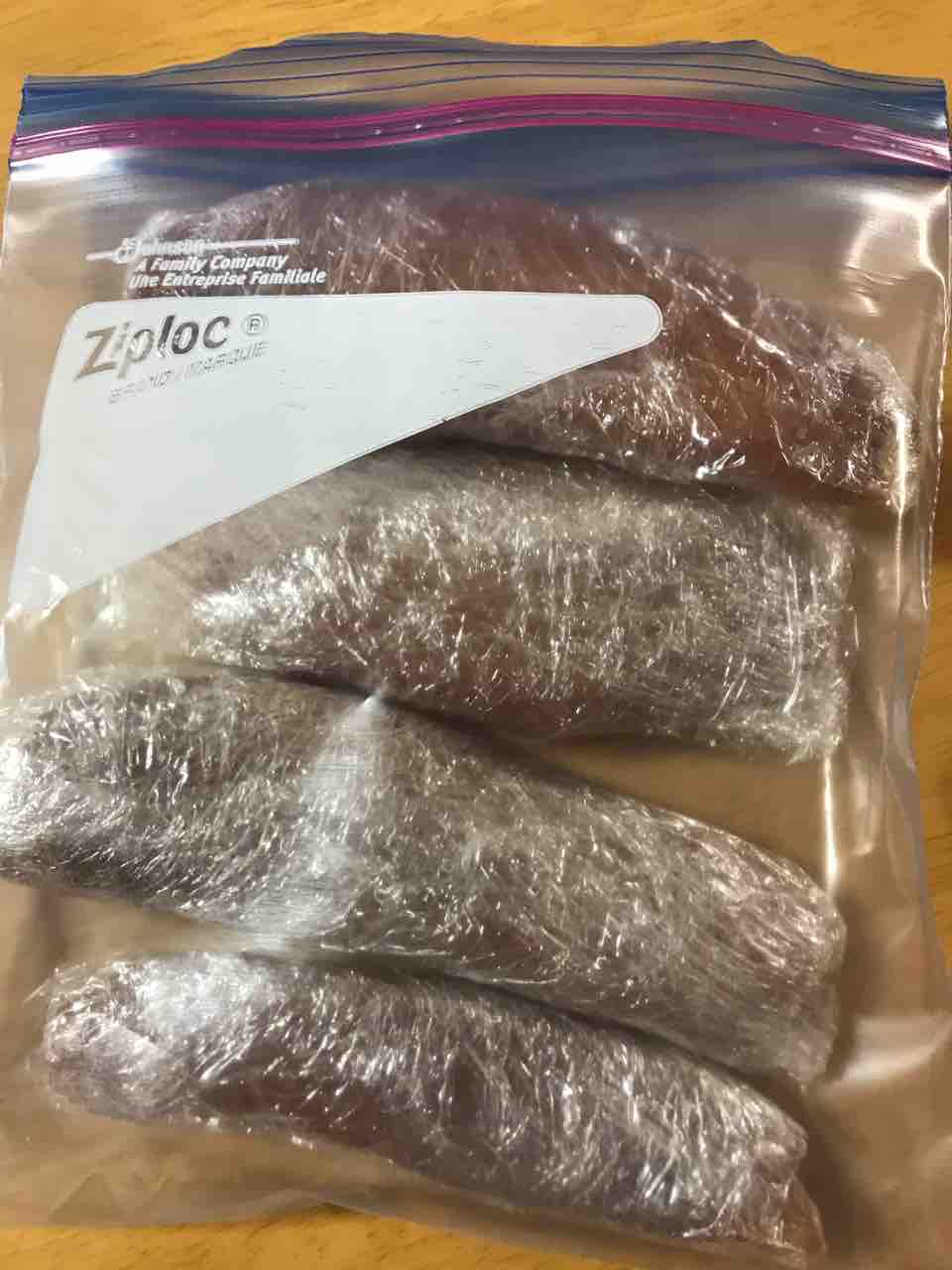 卵と卵が引っ付いてる部分を卵ギリギリで切り取ってラップで巻きます(キッチンバサミ等で簡単に切れます)