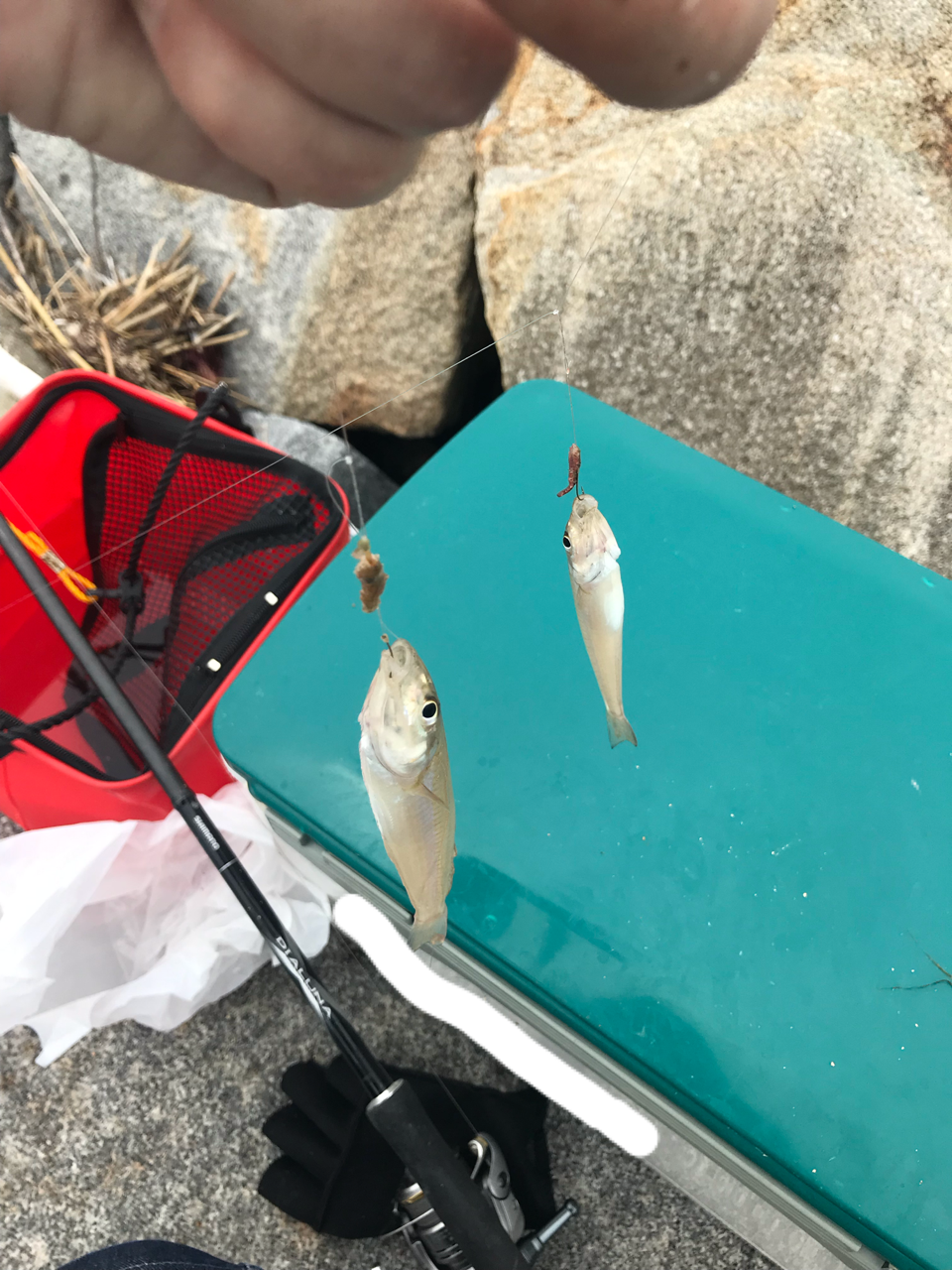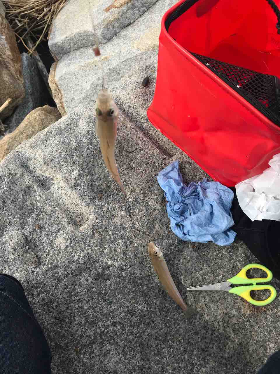 たまにはピンギスも釣れてくるけど飲まれてないからリリースできる(本日は10センチくらいのピンギスが10匹くらい釣れたけど全て飲まれてなかったのリリースできた)