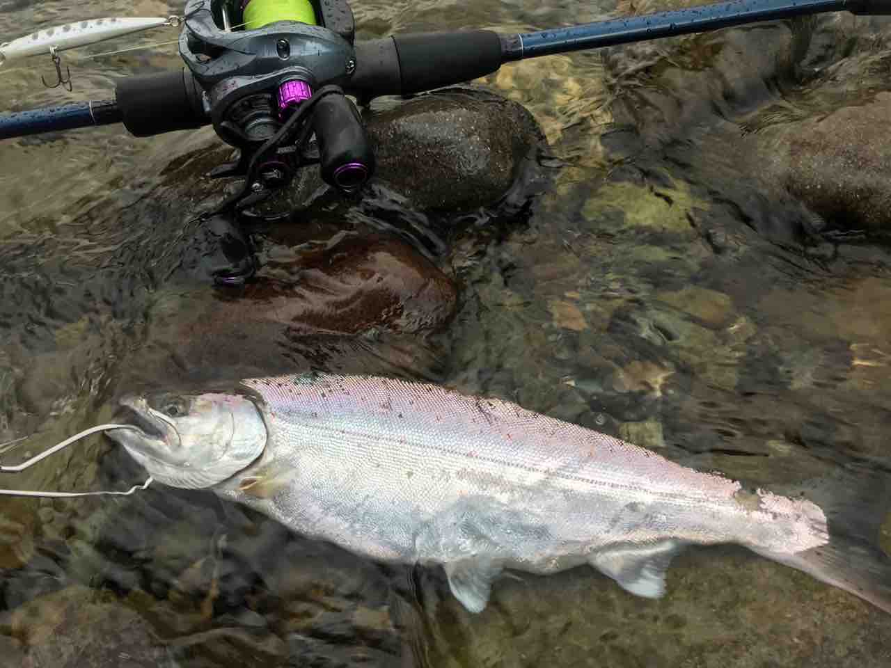 川に立ち、下手くそなアクションで誘い続けた結果、僕のルアーにヒットしてくれたありがたい魚です