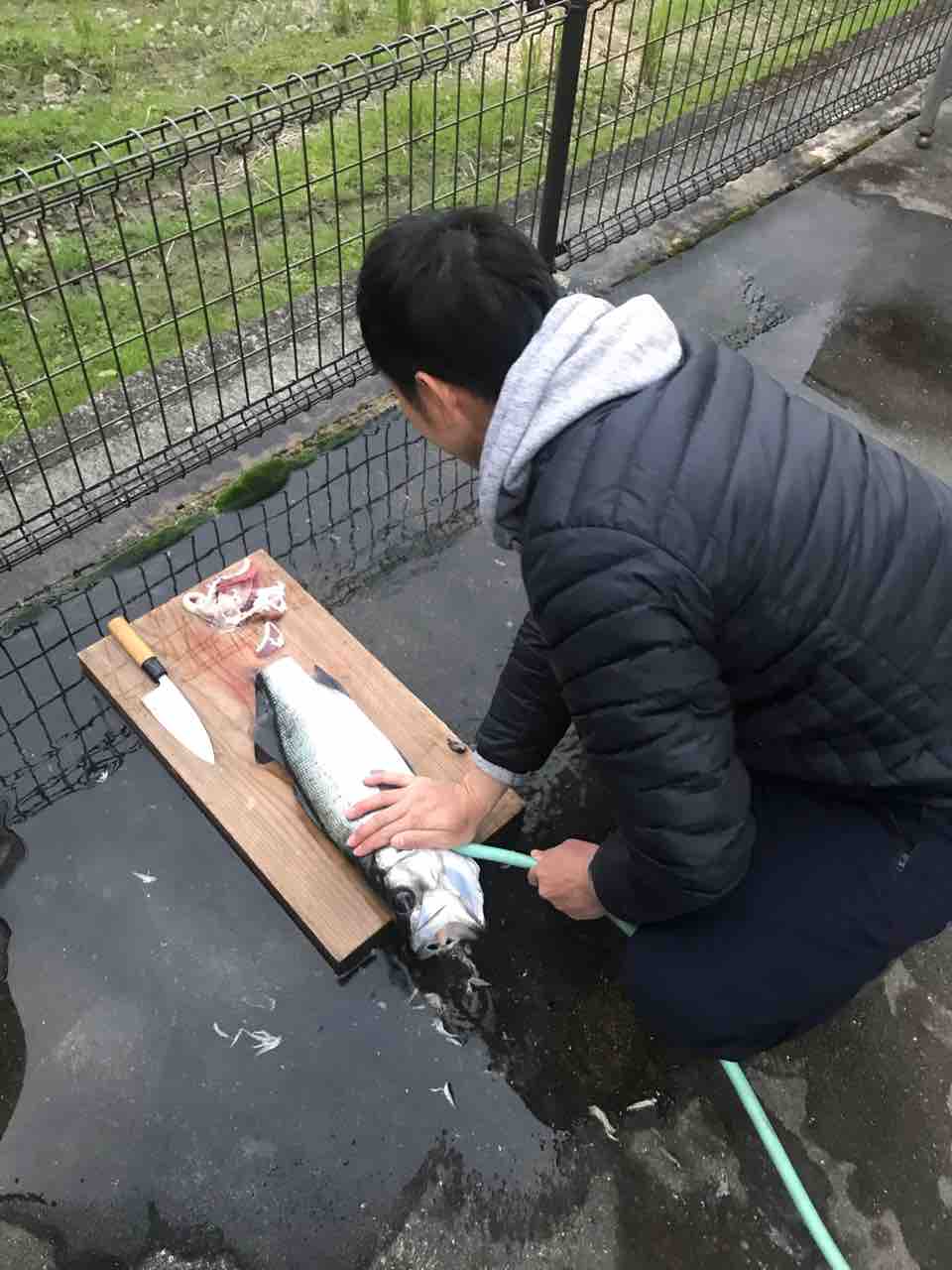 僕の前でめったに魚を釣らんトヨイチくんがいきなり本命のヒラをキャッチして焦る