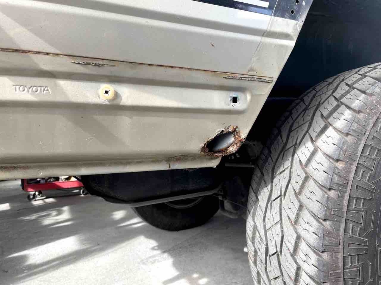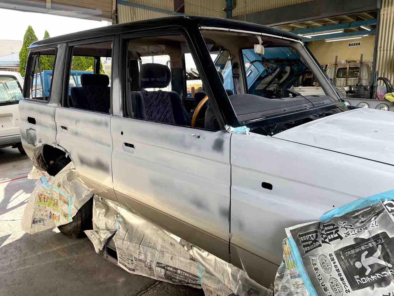 78プラドあるあるのオーバーフェンダー周り、サイドステップ周りの腐食部分を板金です