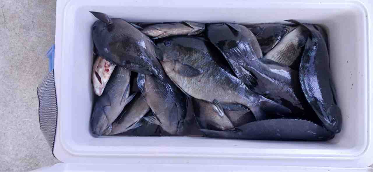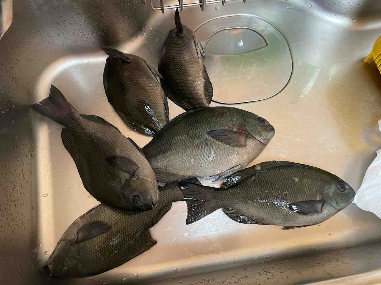 25〜35くらいのグレが到着してました(三男は15匹くらい釣れたみたい)
