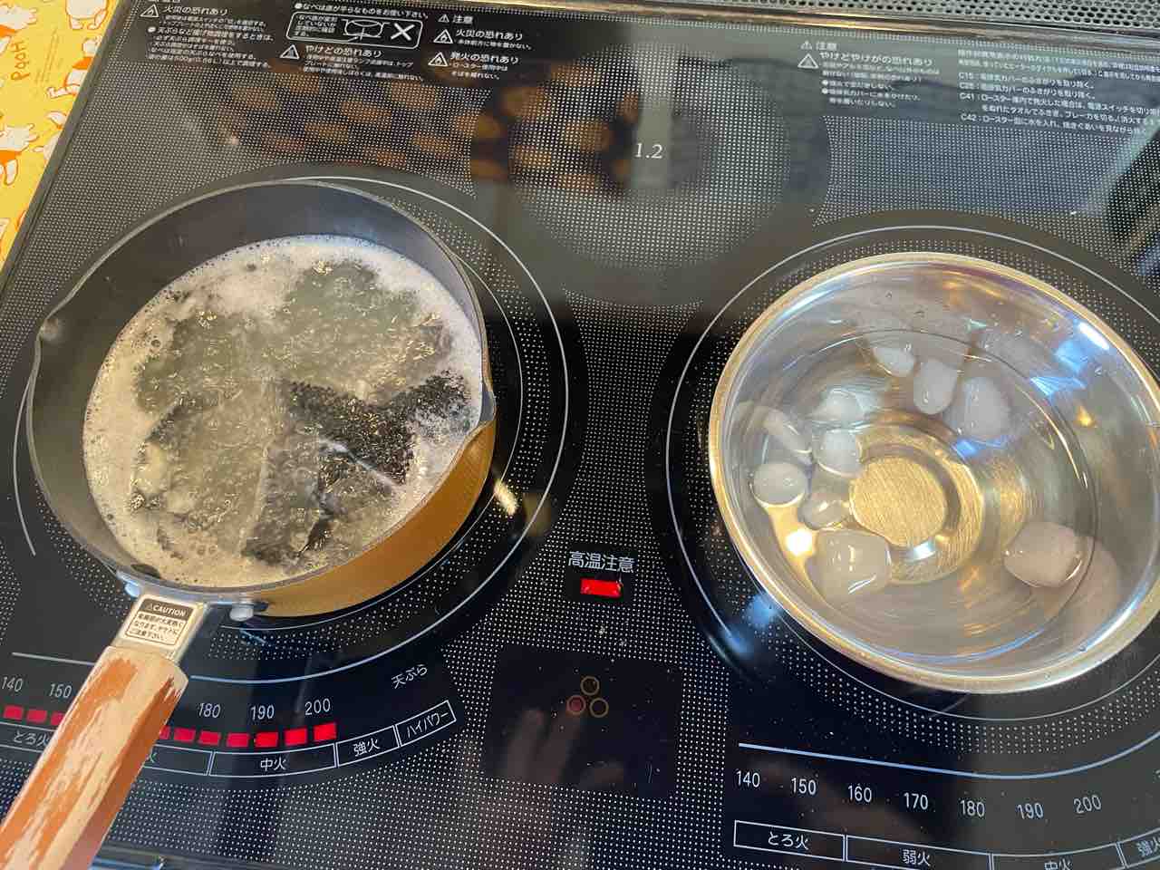 皮目の脂が美味しそうだったんで、サッと湯引きして氷水で締めます
