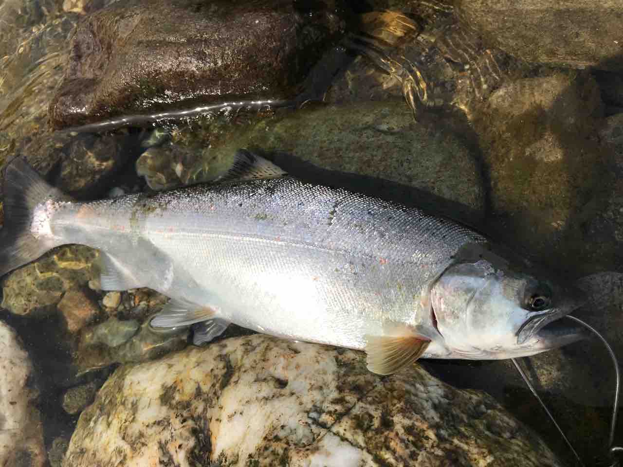 丁寧に流れを探り、石の裏にできるヨレ、目視できるブレイク等を通していきます