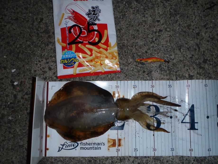 夜には地元の漁港でアオリイカを発見