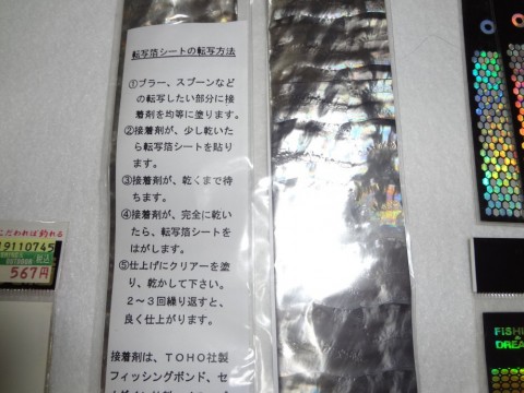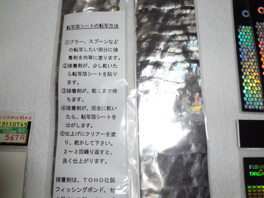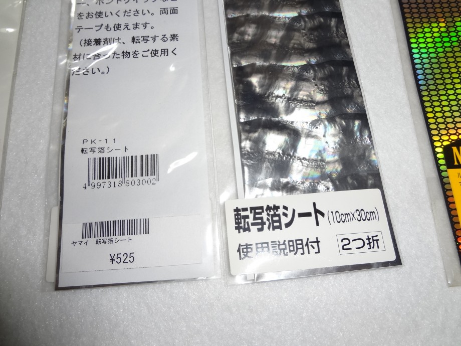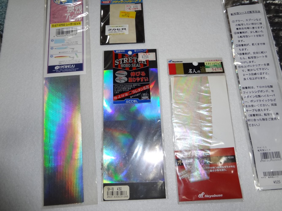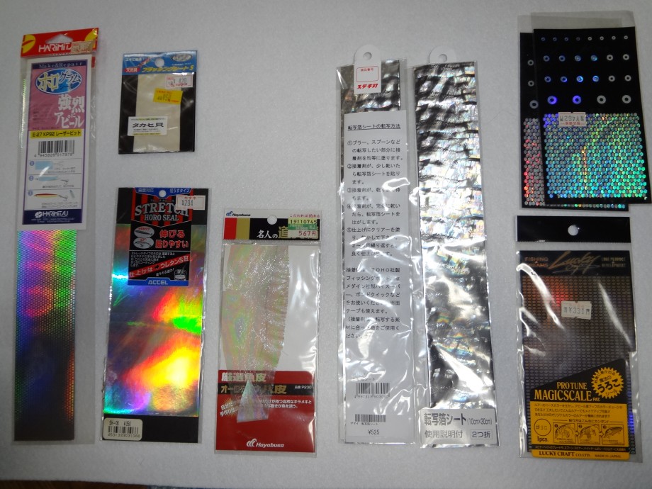 ハンドメードルアーに使う物とか、貼り付けるだけの物とか、色々です。