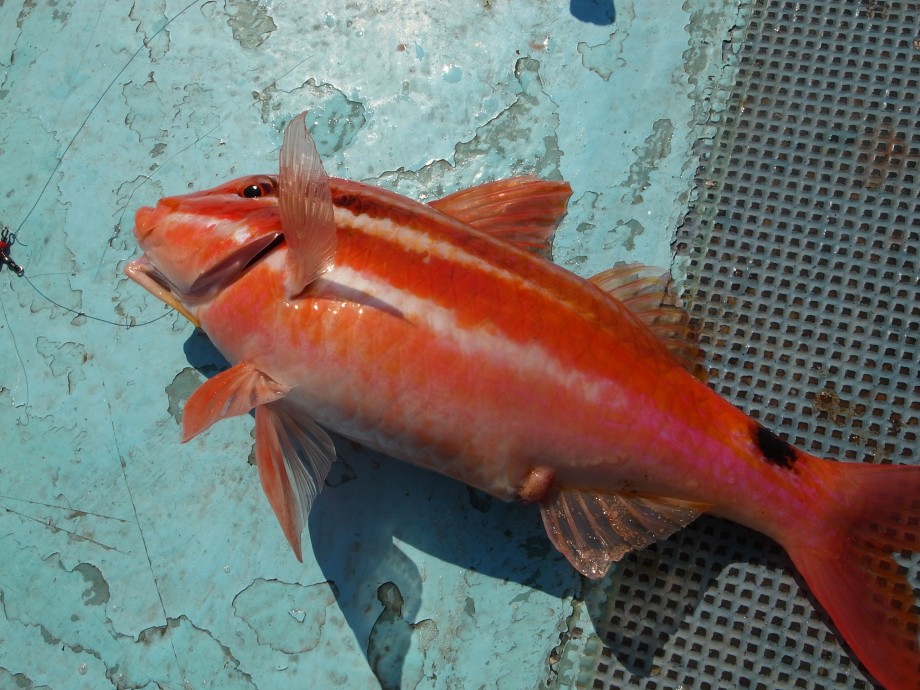今回の狙いのアカハタ、オオモンハタともに釣りあげることができ、さらにカサゴ、オニカサゴ、エソ、タマミ、チャリコ、ベラ、キタマクラ(笑)、アオリイカなどなど色んな獲物をたくさん釣ることが出来ました。