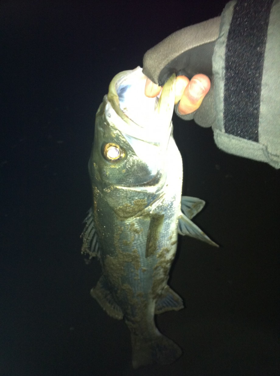 移動後、水面をライトをつけて確認。