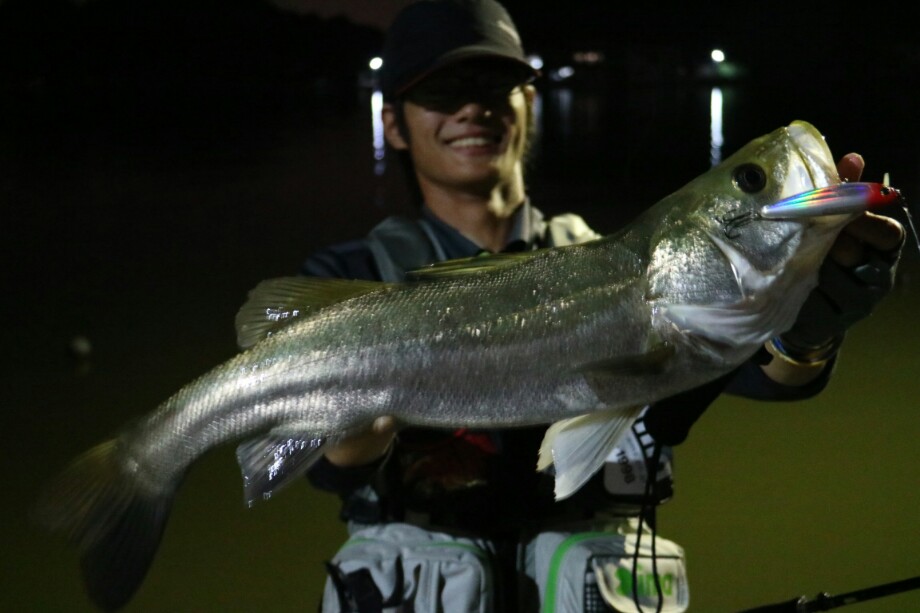 二人とも最後に強烈な引きを楽しみ、シーバスの部は終了!