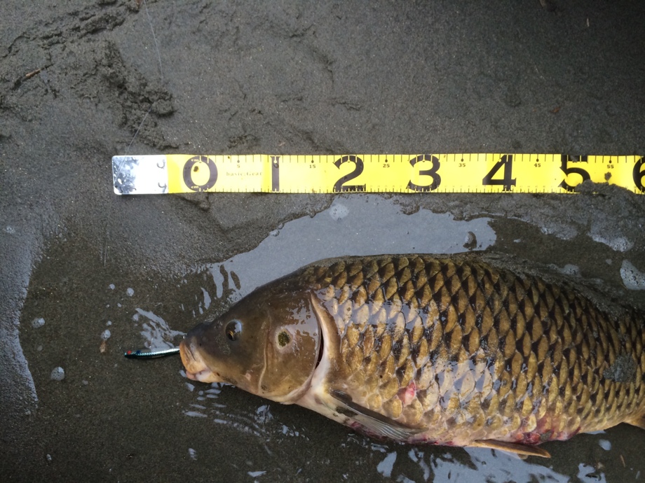父は離れたところでやっていたが、メーター楽勝のボイルを見てしまったらしく、スイッチON。朝マズメからはサーフへ行こうと決めていたのですが父も自分もそのボイルが頭から離れず結局8時ごろまでやっていました。