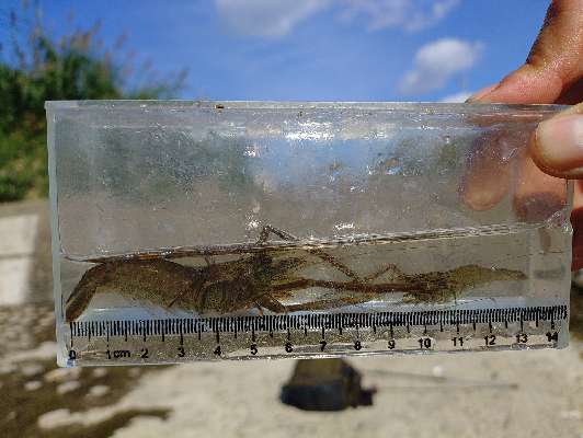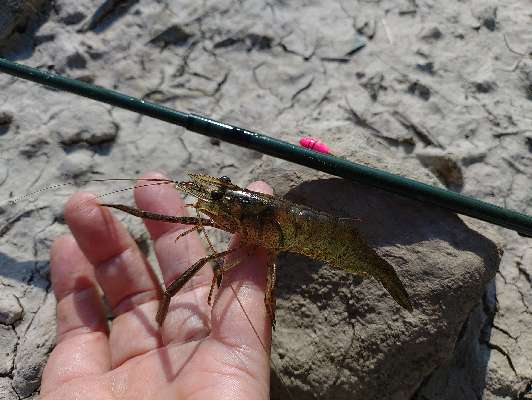 そんな中、釣友さんがテナガエビの群れ見つけて、二人してテナガエビ狙ってみて