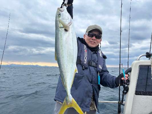 私がヤズヒットさせたのを見て、同船者達もジギングに変えて、船内ヤズ2本追加。