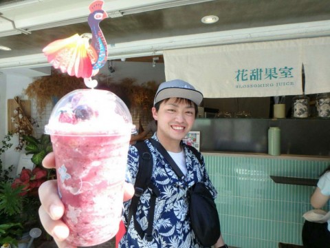 このお店は台湾女子に非常に人気だそうで、岩男くんは色鮮やかなスムージーを購入。