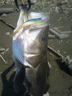 チビッ子バイブを再びキャスト。ピックアップでコツン。で、鰓あらいかわせずハズレる。