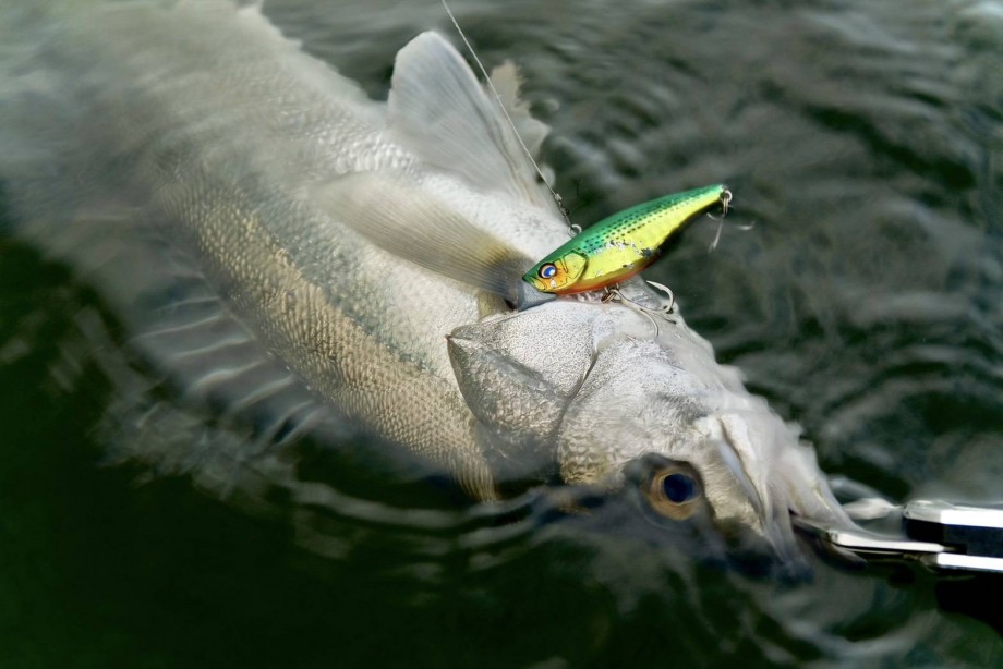 しっかりとルアーを口でひったくり、ひるがえるようにしていく為、フックの掛かりもバッチリです。魚の活性に合わせたカラーの使い分けも重要です。