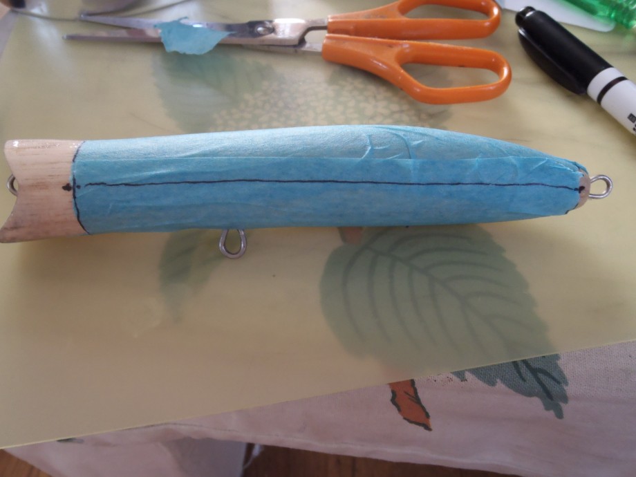 マスキングテープをルアーに貼ります。