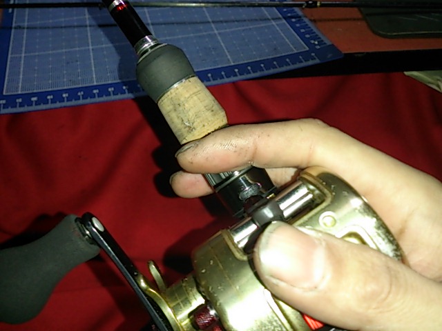 ベイトでパーミングするとき、普通は人差し指はリールシートの下側。